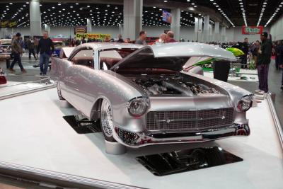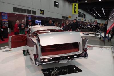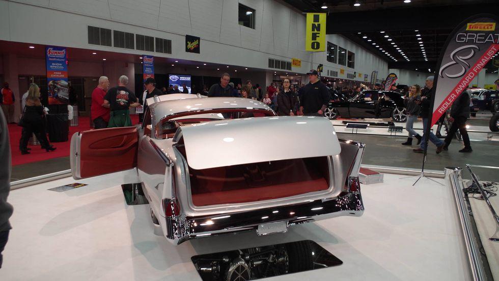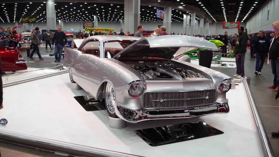 This heavily modified Chevy was put together by the team at Johnny’s Auto Trim and Rod Shop in Alamosa, Colorado, for Greg Hrehovcsik. Every panel of this Chevy has been heavily massaged. A custom top panel joins the rest of the body, which was channeled over the frame rails and sectioned. Sectioning, for those who don’t know, is removing material from the side of a car to make it lower -- obviously that means reworking every piece of sheetmetal.