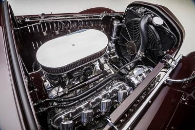 Consistent with the teamwork idea, Roy Brizio frequently partners with Darryl Hollenbeck at Vintage Color Studio for final sheetmetal and paintwork. Nick wanted a solid, non-metallic color for the Fordor and was determined to avoid black, yellow, or red. He had seen a Ferrari painted a beautiful shade of rich brown that impressed him. The Ferrari owner brushed him off when Nick asked him about it, but the color stayed in his memory. Hollenbeck prepared sample panels and the result is a custom mix called Rosa Maroon. The chrome was handled by Sherm's Custom Plating in Sacramento, another regular contributor to Brizio projects.