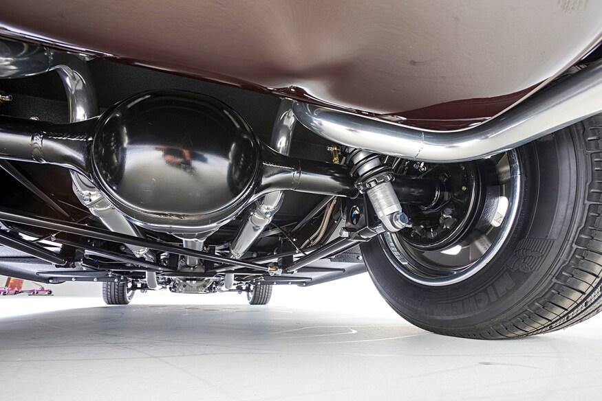 The Fordor rides on boxed framerails from Total Cost Involved Engineering, with a TCI Engineering independent front suspension and rack-and-pinion steering. RideTech coilovers smooth out the ride at all corners, and TCI Engineering front and rear antiroll bars and a rear Panhard improve handling. The rear four-link locates a Currie 9-inch with 3.70:1 gears with limited slip, spinning Currie 31-spline axles. The TCI Engineering pedal assembly operates Wilwood 11-inch front disc brakes and 11-inch Currie drums, plumbed to a Wilwood master cylinder and proportioning valve.