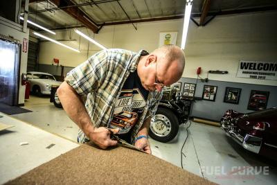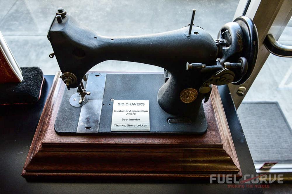 Here in Northern California, Chavers’ shop is part of a three-way hot rod pipeline that continues to flow at a rapid pace. The process starts at Roy Brizio Street Rods. Once the cars are ready for paint they head to Darryl Hollenbeck’s Vintage Color Studio. The last stop is always Sid Chavers Upholstery. It’s usually straight to the winner’s circle from Sid’s. But there is also business from outside the Bay Area. He just upholstered a ’32 Ford coupe for the Hot Rod Garage and Rodger Lee of Ironworks Speed & Custom uses Sid a lot these days. Chavers says Lee’s exotic Pro-Touring machines has “gotten me out of my box.”