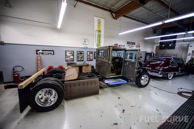 The process is clean and efficient here. Each interior takes an average of three weeks to finish but that varies. Hi-boy Ford roadsters are two-week jobs. A 1932 Lincoln KA is a 4 weeker. A coupe might take 3 weeks. But Sid and Rich stick to precise deadlines. If they say the car will be done on the 25th, you can pick it up that morning. They never miss.