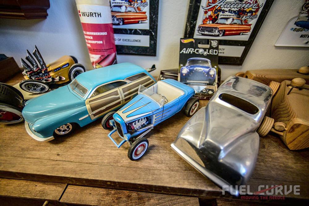 Wondering around Sid’s place you will find endless artifacts of a life behind the wheel of a '32 Ford roadster. Chavers estimates he’s owned a dozen deuce hair blowers. There are rows of polished LA Roadster Show mugs, Goodguys awards, miniature sewing machines, supplies and a healthy dose of hot rod art much of it by his late friend Dave Bell. Like we said – Sid’s shop is a window to the past.