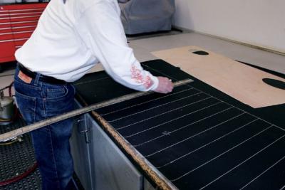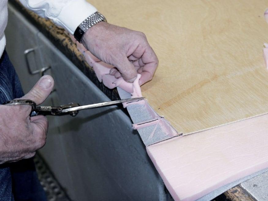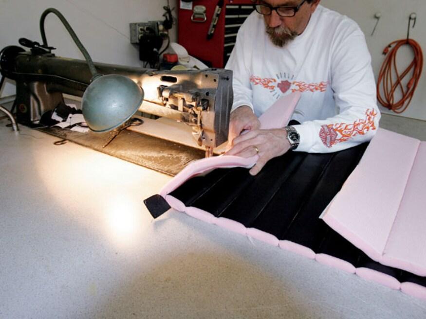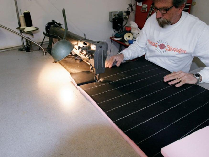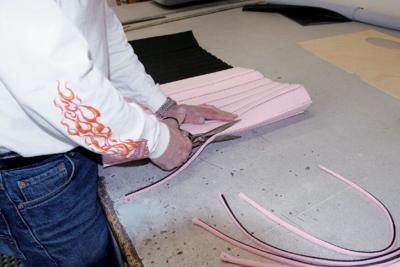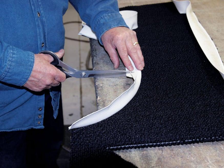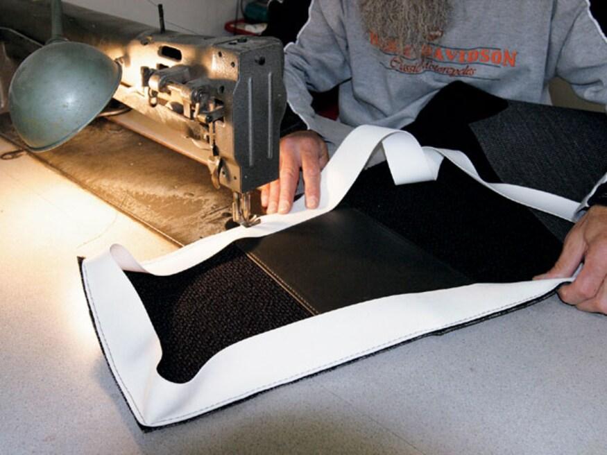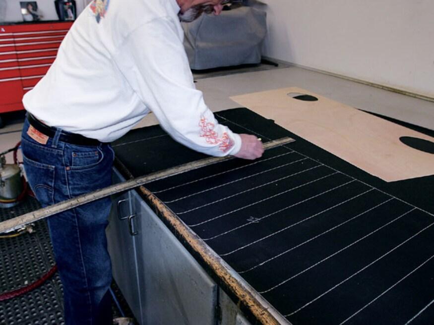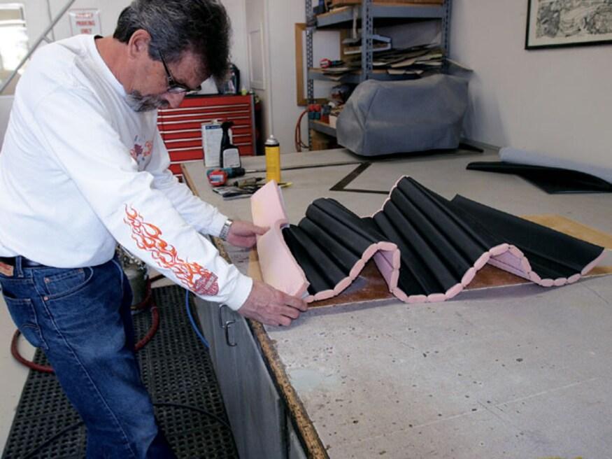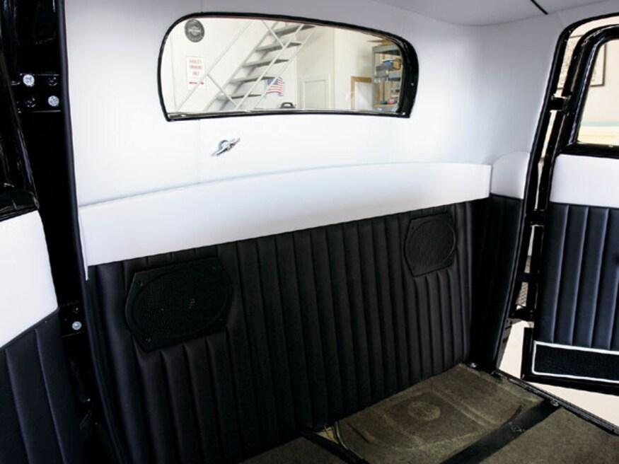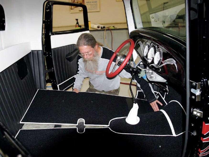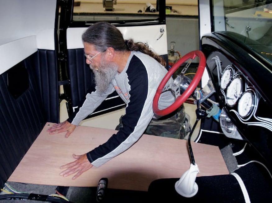 Attention to detail is something that will set the interior of one car apart from another. As an example, even though the area is mostly hidden, there is an upholstered panel behind the bench seat, and another panel hides the stereo equipment in the trunk. But while attention to detail is standard procedure for many stitchers, Sid has a few tricks that set his work apart from most others-like the way he does carpeting. Rather than simply cutting the carpet and gluing it to the floor, he treats it like another upholstery panel. By covering wood panels with carpet, the edges stay perfectly straight and don't curl, which often happens.