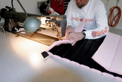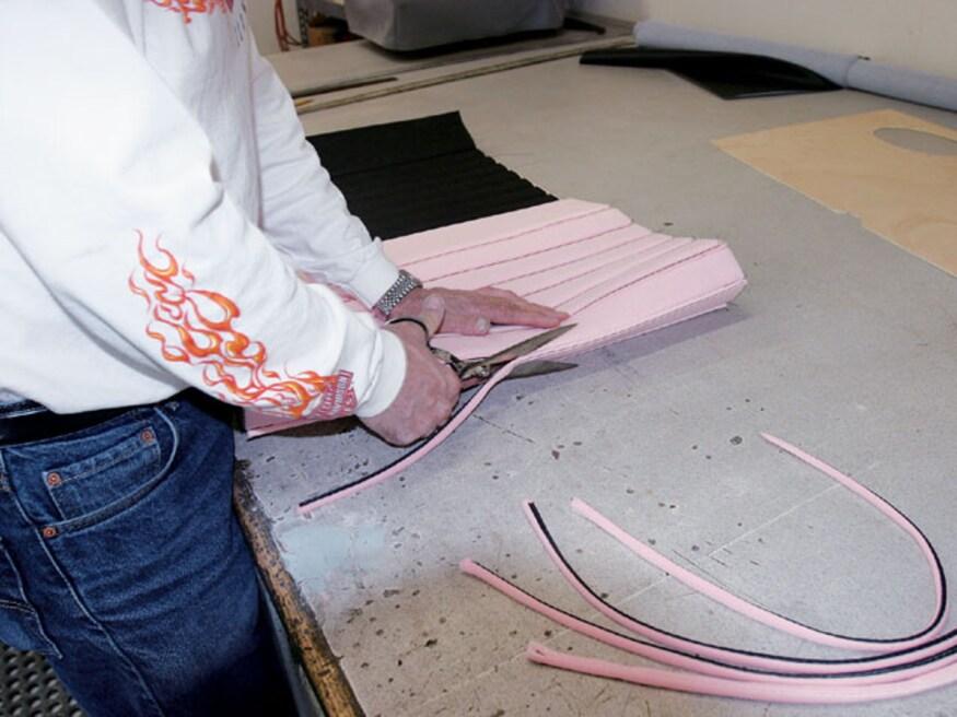 From a design standpoint, Sid breaks interiors down into four styles: original, traditional, newstalgia, and high-tech. Original-style interiors follow the look of the '30s and '40s, with subdued colors and a simple overall design. Traditional interiors are in the late-'40s and '50s style; the design is generally more complicated, often incorporating tuck 'n' roll and multiple colors. Newstalgia is a blend of old and new, modern lines, materials and colors, and is generally more contoured, often using broad, flat pleats. Finally, there is the modern, high-tech look. These interiors feature lots of dimension with high and low panels, and highly bolstered seats with panels that blend together. Of course the important thing is to match the interior styling with the rest of the car, and as our coupe was being built in the style of the McMullen roadster, traditional was the way to go.