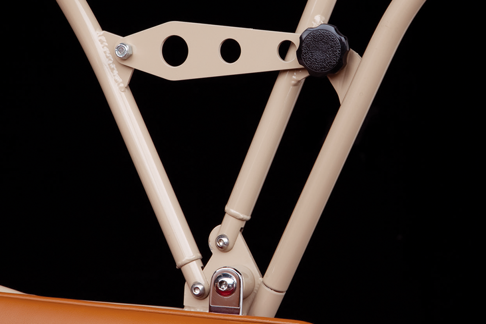 Powder coated steel mounts are custom-fit to the wooden header to align with mounting posts on a variety of aftermarket and original chopped windshield frames. The folding top mechanism comes pre-assembled and mounts to the stock Ford posts just behind the doors. Fully installed, the frame doesn’t come in contact with the body anywhere other than the four stock mounting locations.