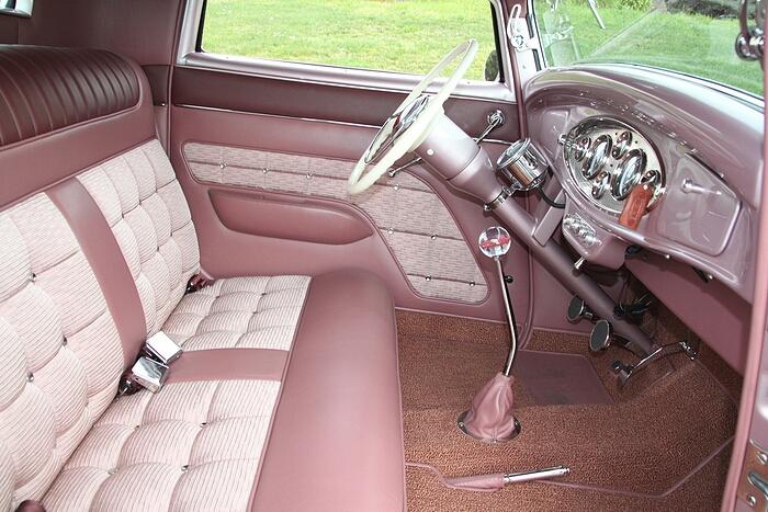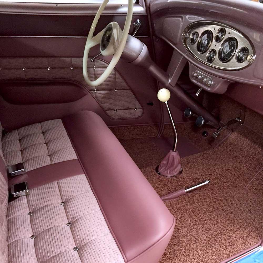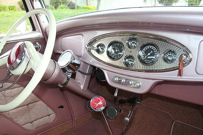In the past, we have built a couple of cars with a theme in mind. Larry liked the idea and came up with one for himself. "How about a Lincoln." We started out with one of our chassis' outfitted with Kugel Components front and rear independent suspension. Power comes from a 402 cu. In. Roush Ford small block and a Tremic 5 speed. The Brookfield body is painted a mid 50’s Metallic Rose Pearl. And for the theme, how about 1932 Lincoln gauges and dash insert, 50’s hubcaps, and a beautifully restored Lincoln steering wheel. The interior will also be picked from classic Lincoln combinations. If you venture to Deuce Days in Victoria BC this July, look for this beauty on the road to Canada.