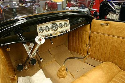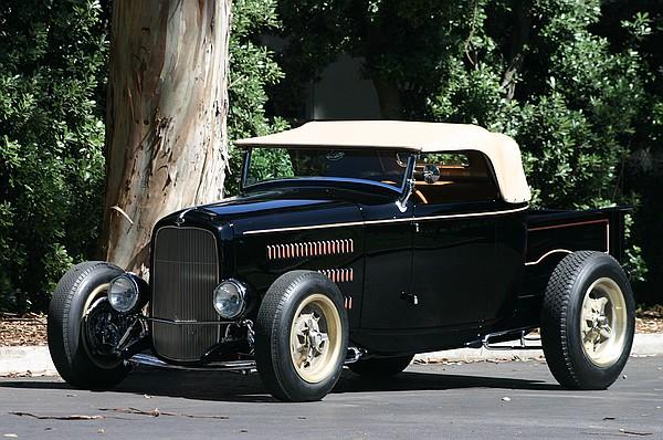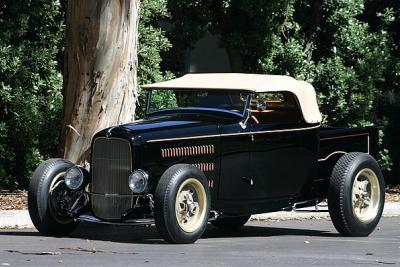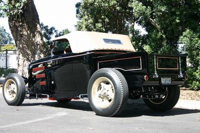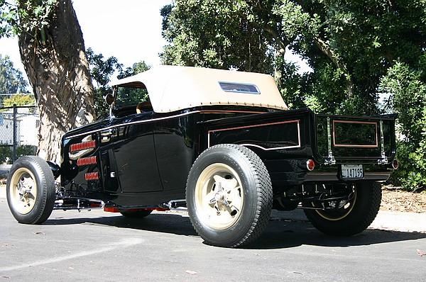 It's a well-known fact that George is a fan of commercial vehicles. He has this thing for hot rods with a cargo area on the back. Wanting to have a 32 Roadster P/U added to his stable, George contacted Roy Brizio Street Rods to do the build. George and Roy put their heads together to come up with a plan that would be pure hot rod with a fair amount of spit and polish thrown in. From the two inch stretched chassis to the 515HP 402CI Roush built Ford mill, this pickup is destined to be a hit on the open road. Check out the cover of Rod & Custom Magazine Feb 06 issue for the pair of pickups that George is the proud owner of.