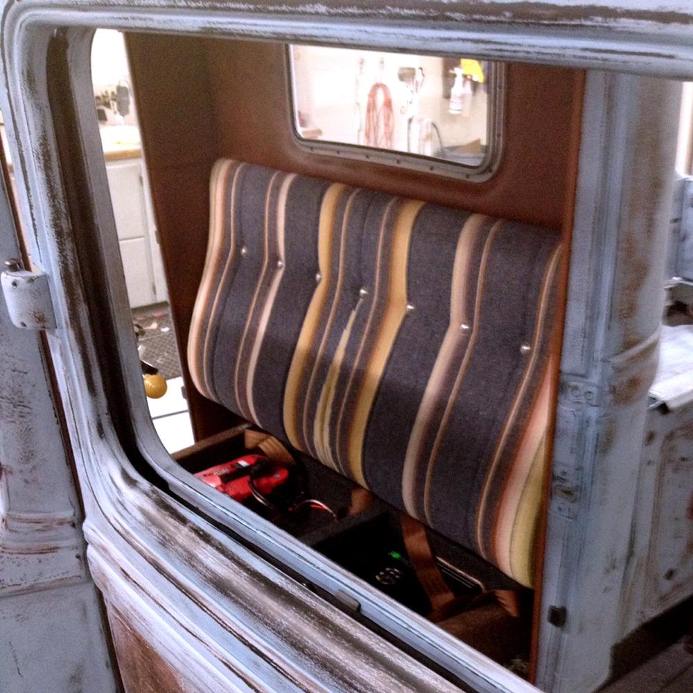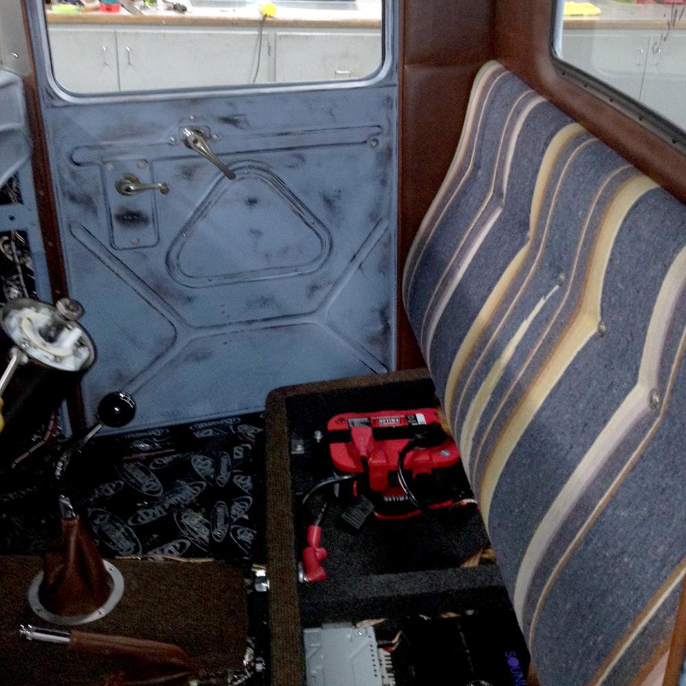 Eric was watching an old movie called Thunderbolt and Lightfoot. It stared Clint Eastwood and Jeff Bridges, among others. There is a scene where the two stars are riding in the back of an old Ford pickup. The truck is all beat up, all in primer and looking as cool as can be. Eric fell in love with this truck and wanted one just like it. The chassis and running gear are all new and dependable. The body is being duplicated from pictures from the movie. Darrell Hollenbeck is doing a masterful job in creating the patina look to the cab and bed. He has made the fenders look like the ones on the truck as well with dents, rips and welds. Follow the build to see what the project ends up looking like and if you happen to go to Eric's latest tour, check out the tour shirt with a drawing of the back side of the P/U with an amp and guitar in the back.