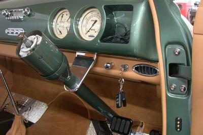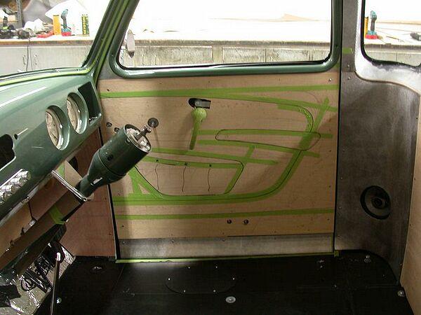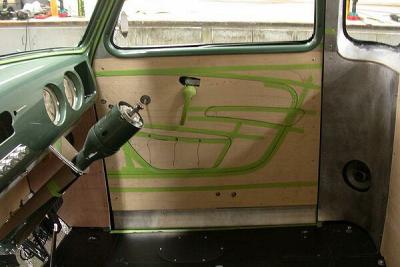 Immediately after we shipped Eric's '49 Ford Coupe off for paint, we got started on his '49 Chevy pick-up. Like his shoebox, this truck is also going to have plenty of subtle modifications. The top is chopped 1", the cab has been channeled 2" over the frame, the front quarters have been sectioned 1" to raise the front fenders, and the hood has been sectioned 1" through the mid section. We also shortened the wheelbase of the TCI frame 4" to move the rear fenders forward on the bed. And just like the '49 Coupe, the truck will be right hand drive to prepare it for its life in Great Britain.