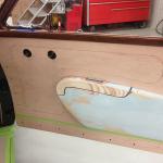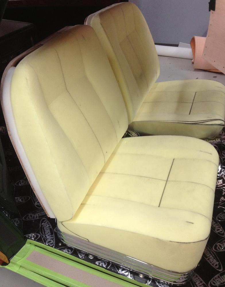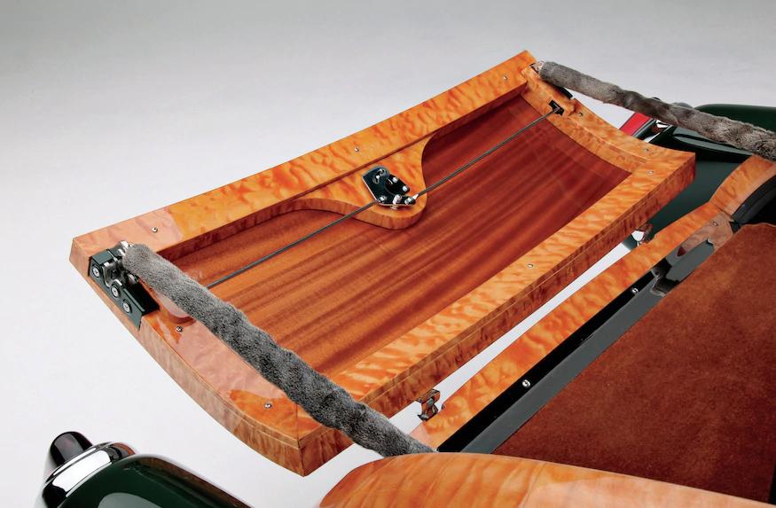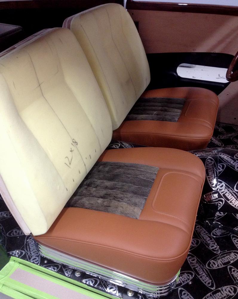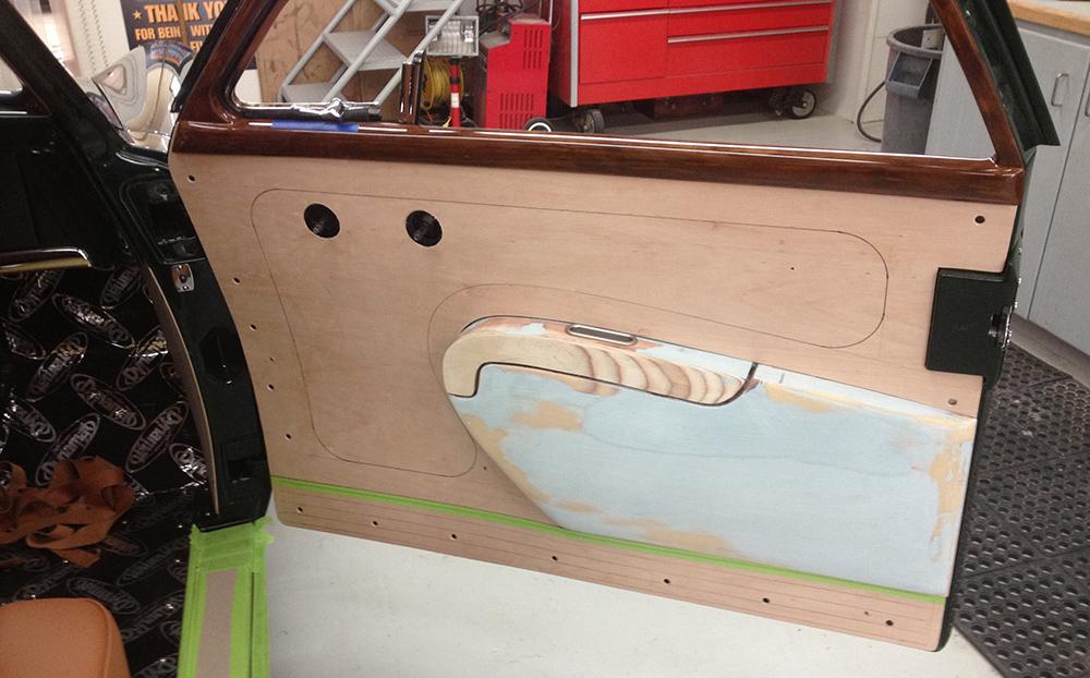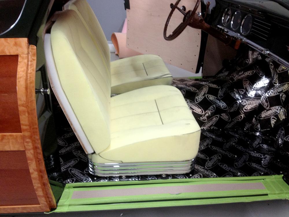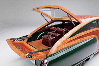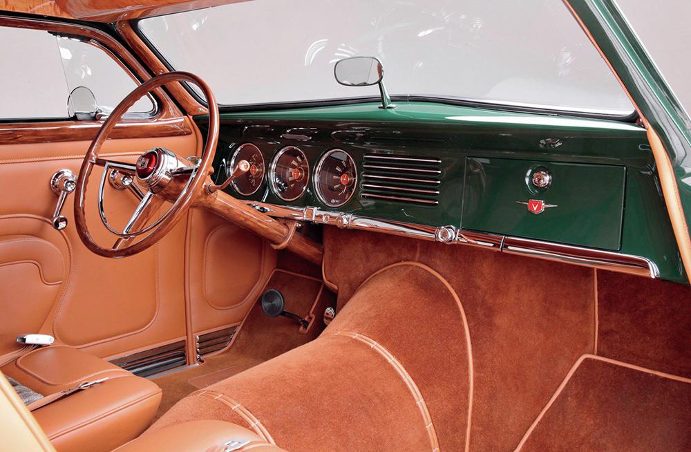 This car was under construction when Dennis made the winning bid for it at the auction of the late Joe MacPherson's prized collection. The unfinished project had been started by Doug Carr of Woodn' Carr. It had already been transformed from a sedan to a fastback (based on Thom Taylor's design sketches) and was already a woodie. The top was chopped 2-1/2 inches, and the rear fenders were stretched 18 inches and treated to custom taillight lenses and bezels. The '37 Ford headlights were installed by Steve Davis, who had done some of the early fabrication on the car.