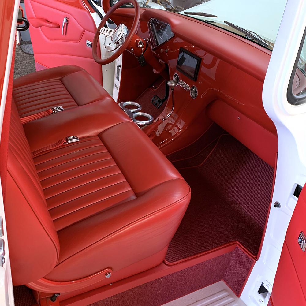 Just finished a nice Cameo for @polkaworkman full red leather with German square weave carpet. @eurekaleatherinc @veterancompany built by @hotrodgarage